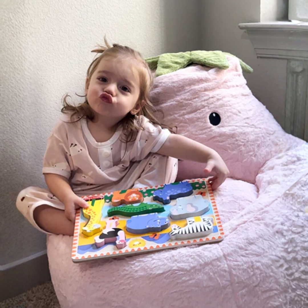 The Eggplant Bean Bag is made with child-safe materials and features safe zippers, ensuring your kids can relax without worry.